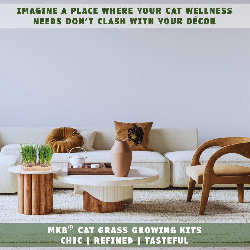 Boost your cat’s well-being and enhance your home’s elegance with MKB’s organic cat grass plus growing kit.